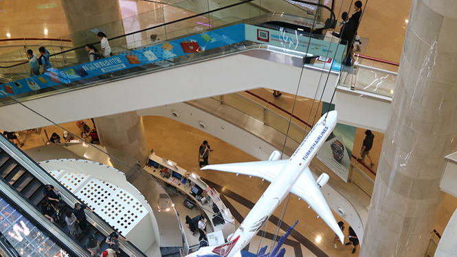 深圳萬(wàn)象天地商場(chǎng)內(nèi)部中庭懸掛吊...