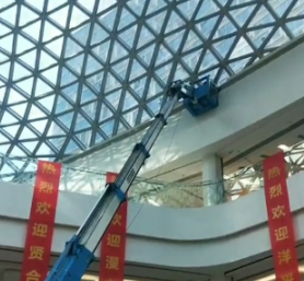 如果在商場(chǎng)的裝修階段或者未營(yíng)業(yè)前的階段,安裝人員可以使用高空作業(yè)車(chē),也就是平時(shí)說(shuō)的蜘蛛車(chē)來(lái)輔助安裝工作,工作人員站在吊籃之中,隨著車(chē)輛車(chē)臂的升降而上升到高處,將電動(dòng)葫蘆的懸掛環(huán)懸掛到商場(chǎng)中庭的屋頂上或者其他較為隱蔽固定的位置。