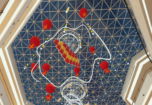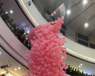 商場中庭上空一般都會懸掛上精美的裝飾品吸引顧客,尤其是到了節假