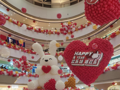 為了迎接2023年新年和中國農歷兔年,全國各地的商場開始擺放和布置